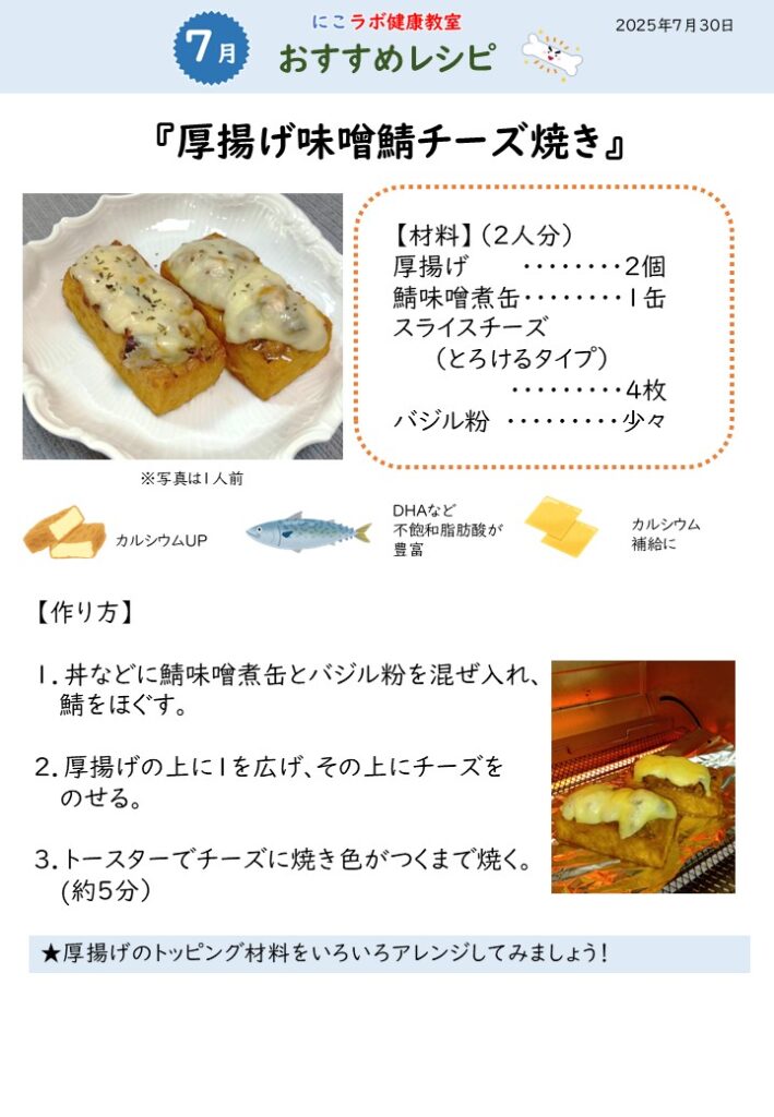 今回は厚揚げ、サバ缶、チーズを使ったカルシウムアップのレシピを紹介しました。