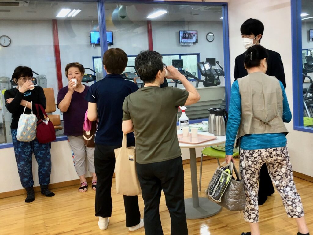 筋トレで体が少し温まった後は、お楽しみのドリンク&交流タイム♪